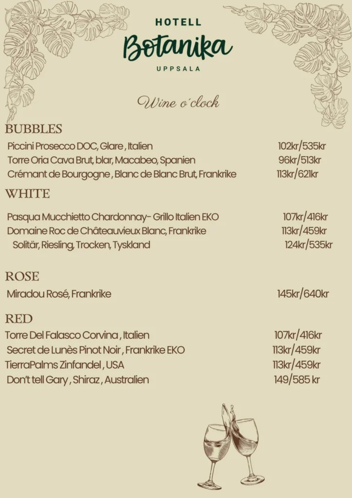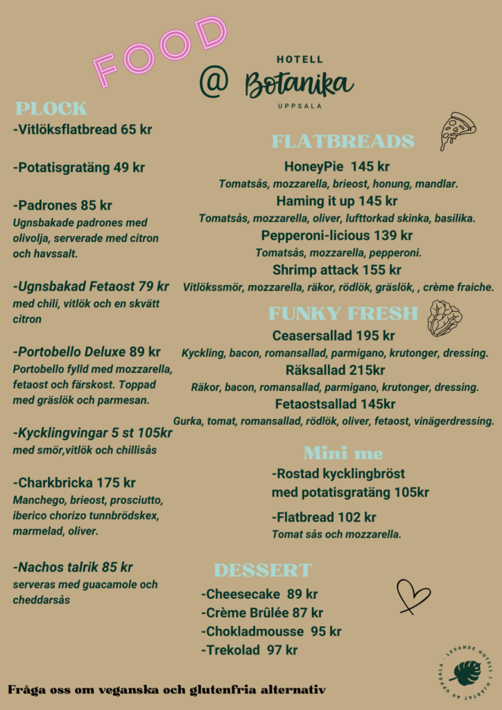 Boka via mail: bokning@hotellbotanika.se eller ring 018-888 06 00.