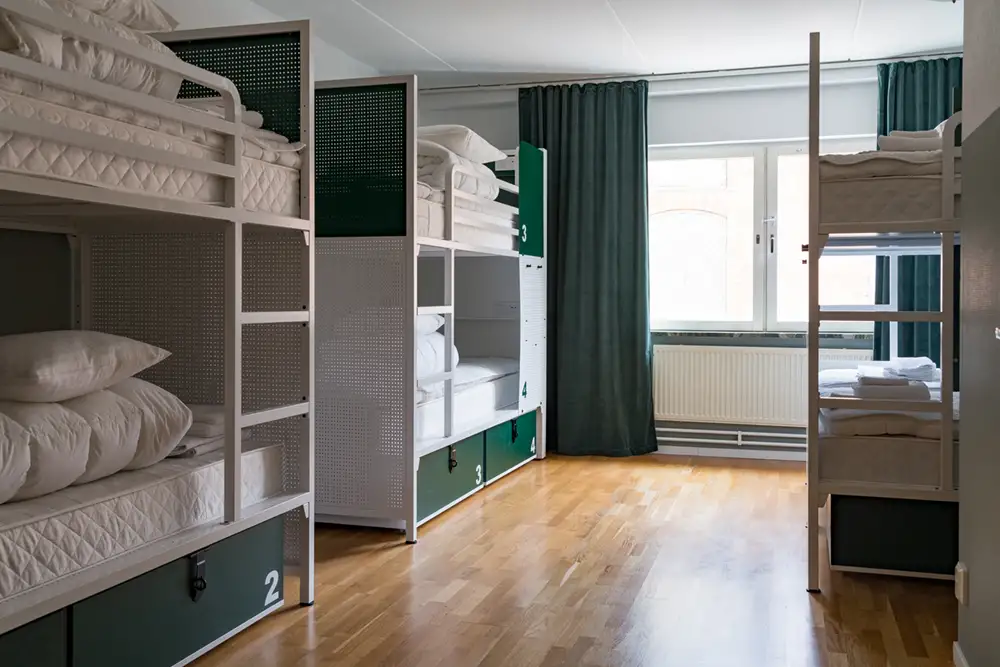 Är ni en förening, fotbollslag, kompisgäng eller större grupp passar våra sex bäddars rum för er. Moderna våningssängar utrustade med inbyggd laddstation för usb. Ni har eget badrum med dusch och toalett.